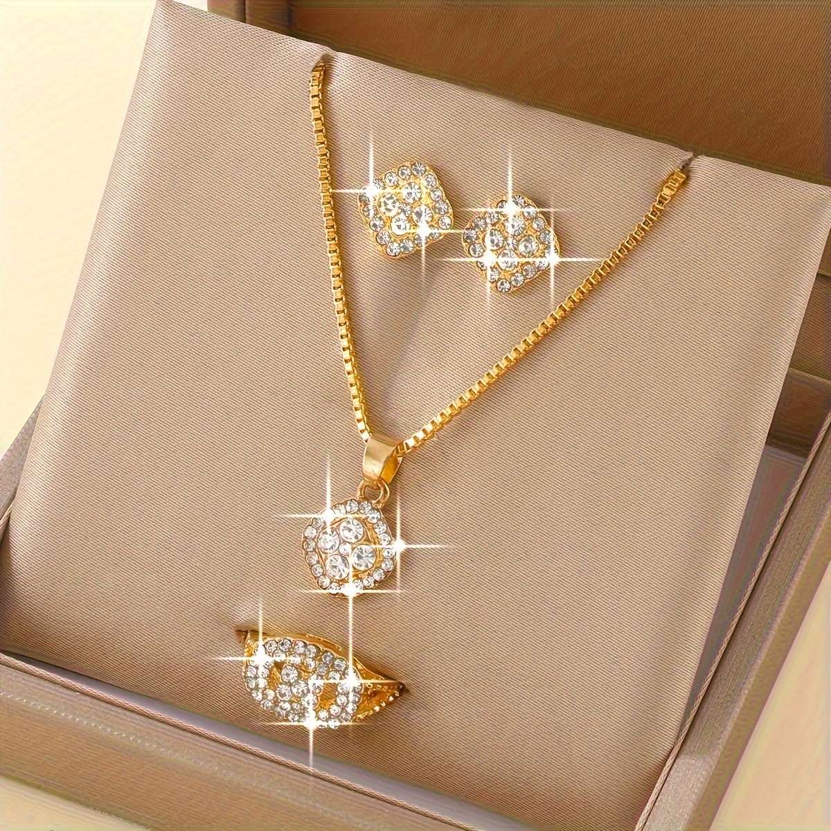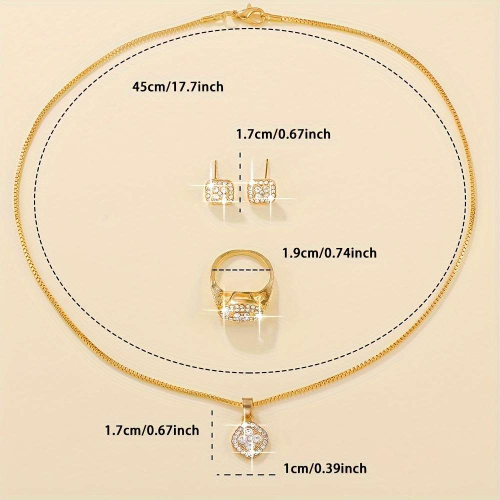 4PCS Women’s Fashion Square Jewelry Set – Minimalist Style, Glass Inlay, Alloy Base, Suitable for Everyday Wear, Perfect for Teacher’s Day/Back to School/Graduation Season