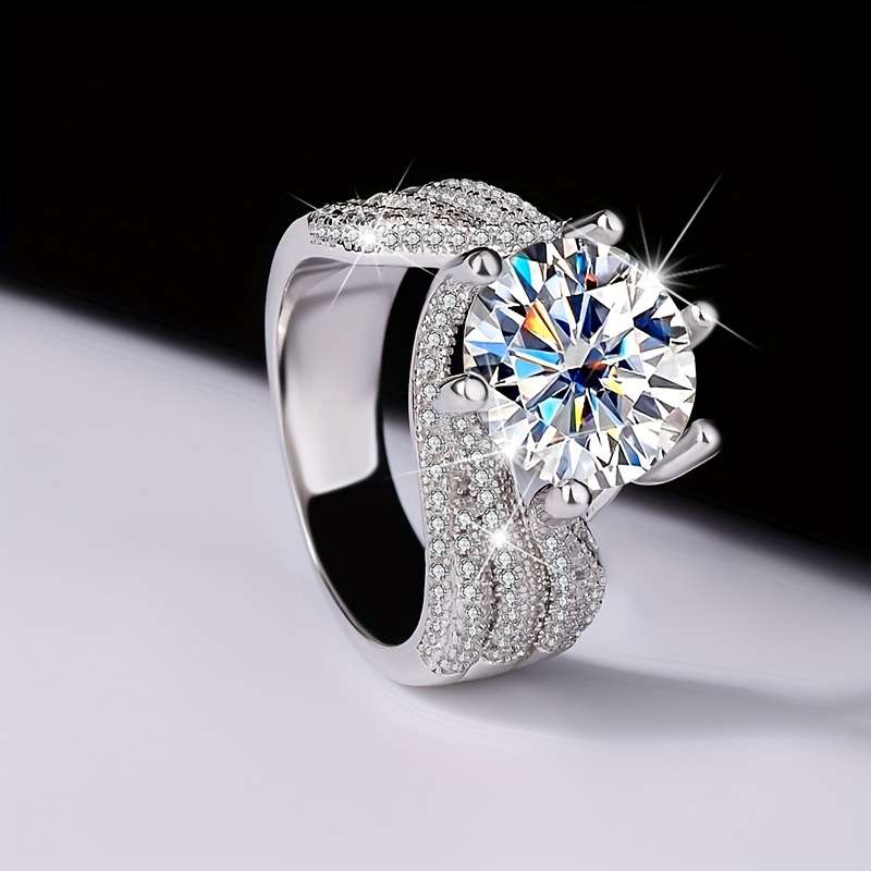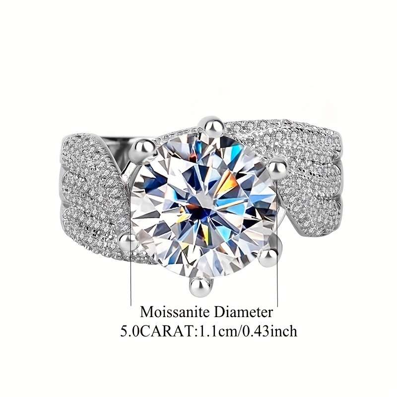 925 Sterling Silver 5 Carat Moissanite Ring, Luxurious Full Faux Diamond Inlay, Commemorative Day Birthday Wedding Engagement Proposal Gift925 Sterling Silver 5 Carat Moissanite Ring, Luxurious Full Faux Diamond Inlay, Commemorative Day Birthday Wedding Engagement Proposal Gift