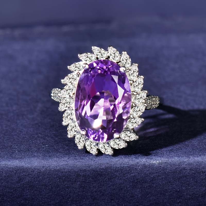 CUANAIR Elegant 925 Sterling Silver Ring with Natural Amethyst, Adjustable Plated Single Ring, for Women, Ideal for Valentine’S Day, Mother’S Day, Thanksgiving, Christmas