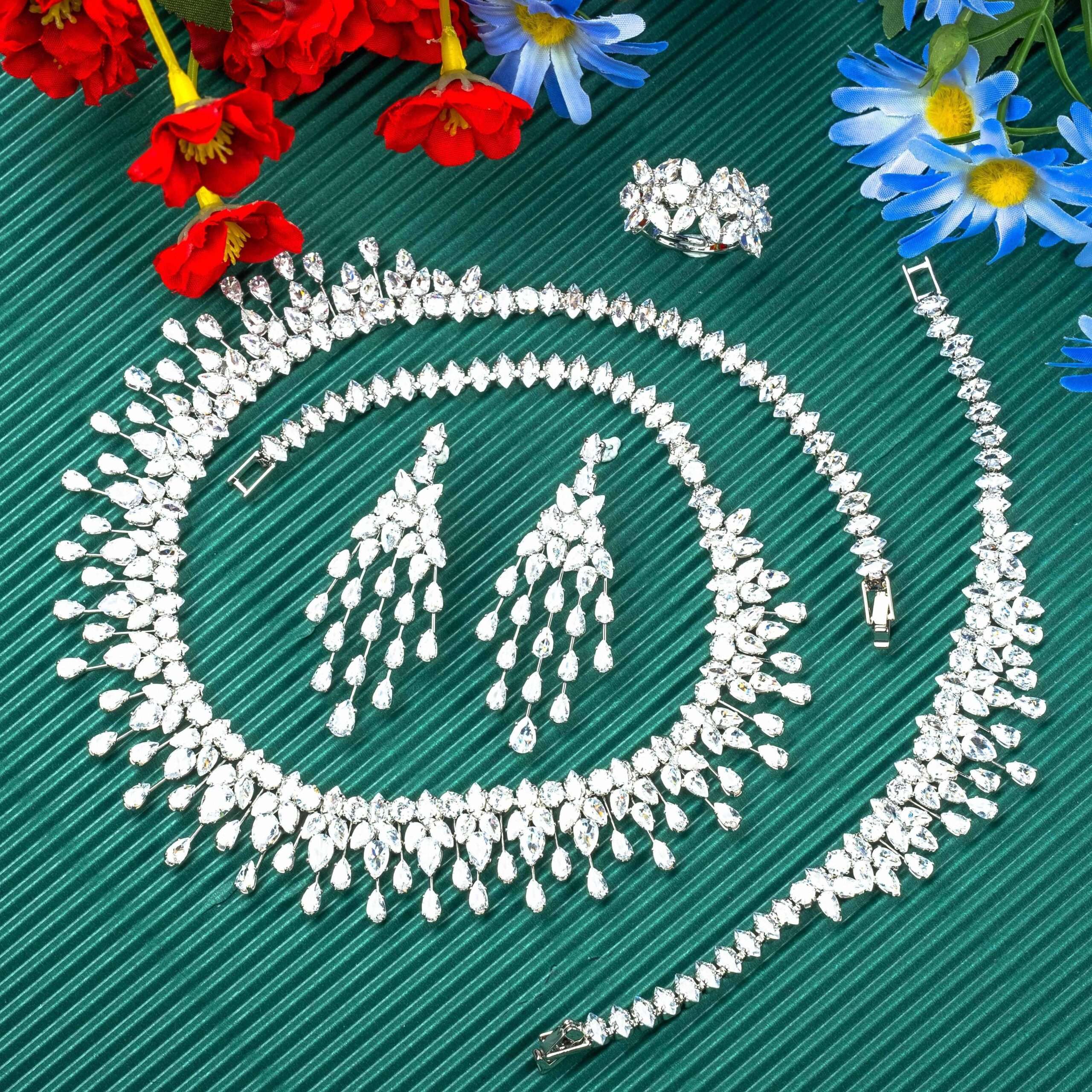 Be the first to review “Middle Eastern Dazzling Droplet Synthetic Zirconia Bridal Jewelry Set, 18K Golden-Plated Droplet Pendant Necklace, Earrings, Bracelet & Ring, 4pcs Opulent Banquet Jewelry Set”