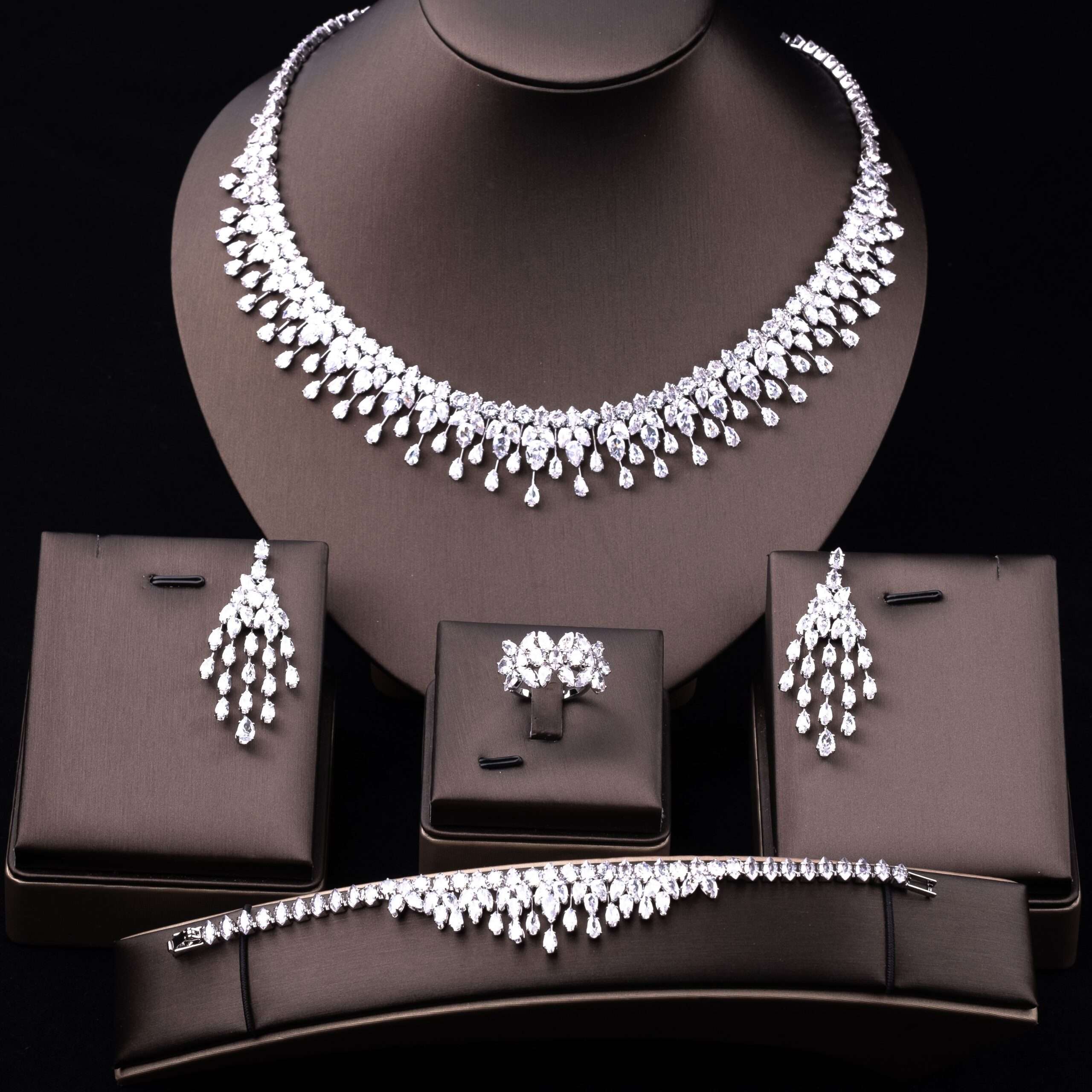 Middle Eastern Dazzling Droplet Synthetic Zirconia Bridal Jewelry Set, 18K Golden-Plated Droplet Pendant Necklace, Earrings, Bracelet & Ring, 4pcs Opulent Banquet Jewelry SetMiddle Eastern Dazzling Droplet Synthetic Zirconia Bridal Jewelry Set, 18K Golden-Plated Droplet Pendant Necklace, Earrings, Bracelet & Ring, 4pcs Opulent Banquet Jewelry Set