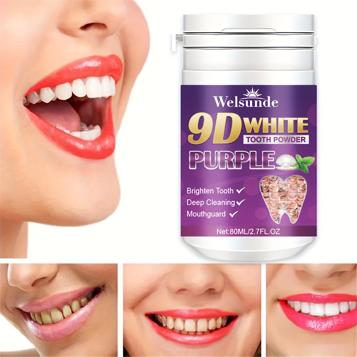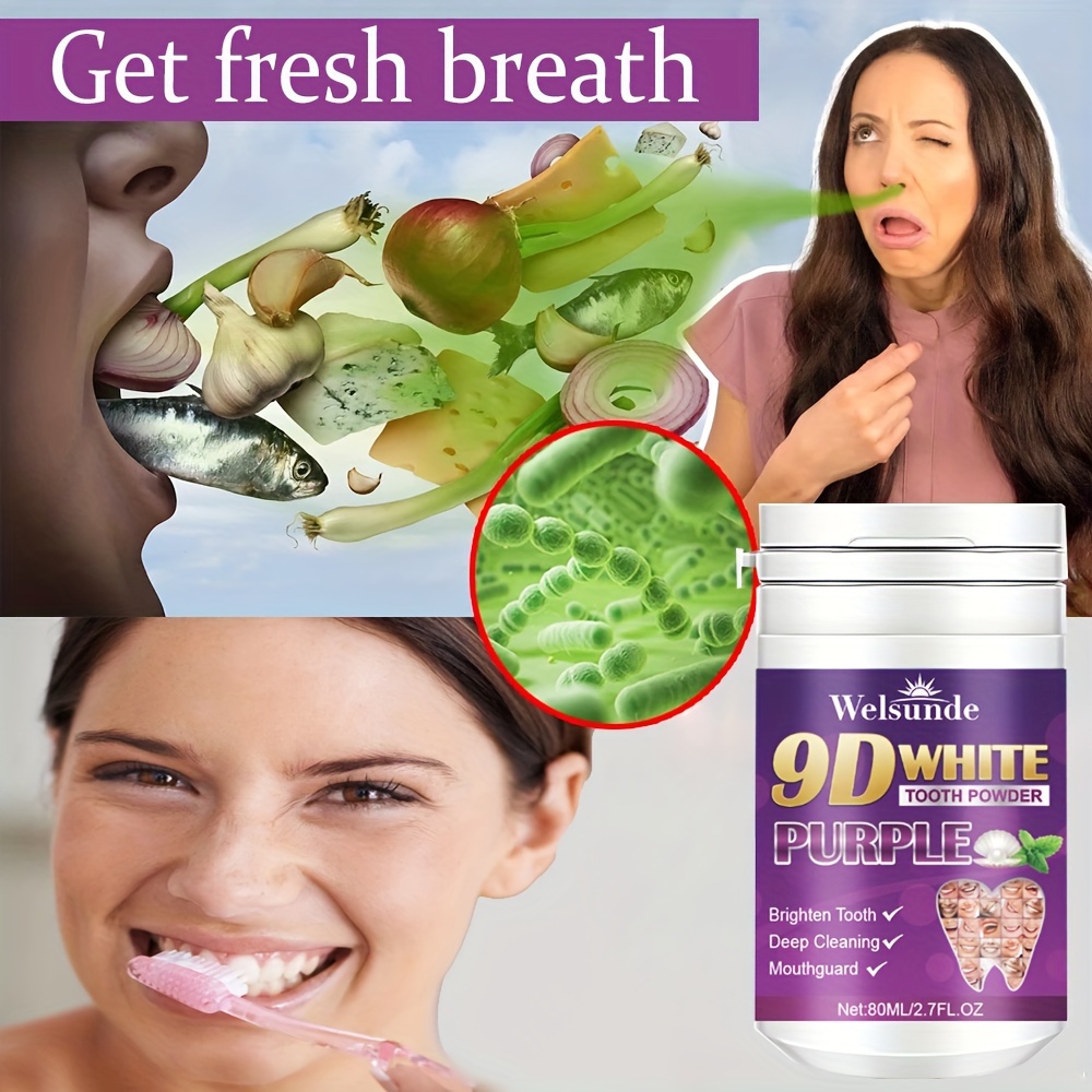 Purple Teeth Whitening Powder, 2.7Oz – Deep Clean & Fresh Breath with Natural Pearl Essence for Dental Care, For Men And Women’S Tooth Cleaning Powder, Basic Teeth Whitening Powder Set for Daily & Travel Use
