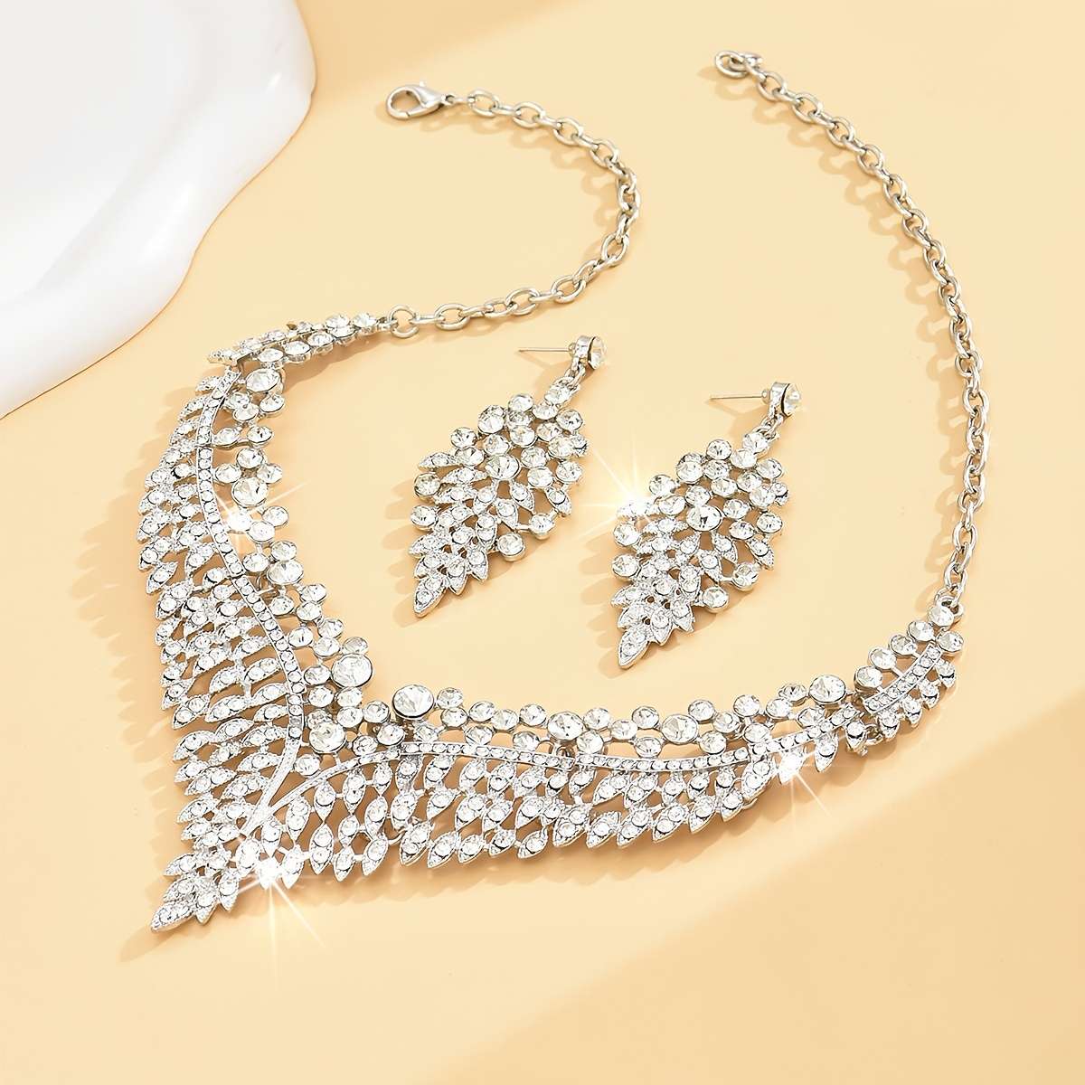 Rhinestone Statement Necklace and Earrings Set - Exaggerated, Glamorous, Vintage-Inspired Jewelry for Women - Perfect for Daily Occasions, Gift-Giving, and Weddings, Especially on Valentines DayRhinestone Statement Necklace and Earrings Set – Exaggerated, Glamorous, Vintage-Inspired Jewelry for Women – Perfect for Daily Occasions, Gift-Giving, and Weddings, Especially on Valentines Day